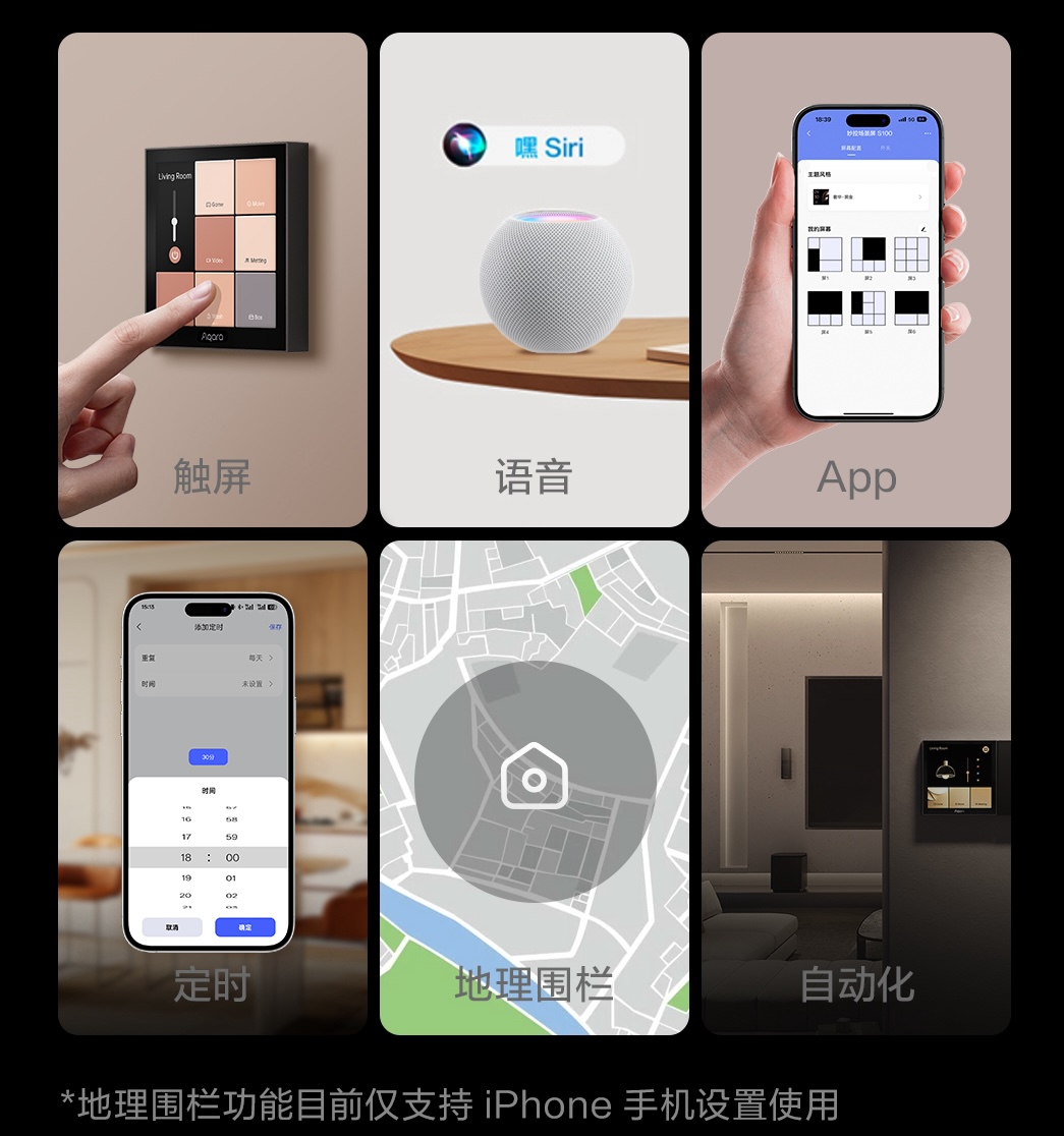 值得一提的是,Aqara 作为 Apple Home 智能家居的代表品牌,其妙控场景屏 S100再次为 Apple Home 生态注入新活力。这款产品凭借出色的兼容性,成为 Apple Home 生态的有力补充。Aqara 妙控场景屏 S100通过 6 个无线开关,可以轻松联动 Apple Home 中的场景或设备,打破不同生态之间的壁垒,轻松实现对第三方智能设备的控制,为用户打造更加丰富多样的智能生活场景。